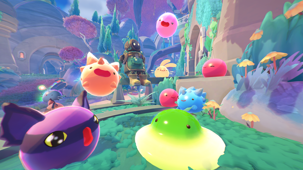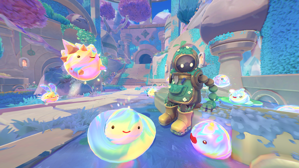 Thousands of magical rainbows painstakingly filtered into the shape of images and videos of Slime Rancher.
